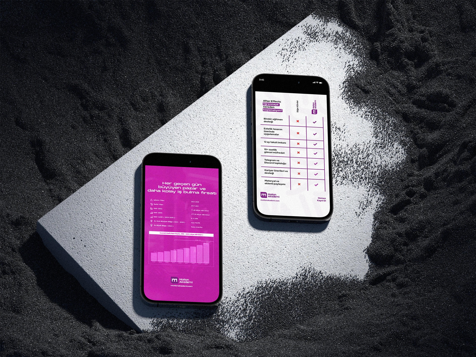 Motion Akademi, hareketli grafik tasarım eğitimi sunan bir platformdur. Eğitimlerini tanıtmak ve dijital dünyada daha geniş bir kitleye ulaşmak amacıyla etkili, dikkat çekici ve modern görsellere ihtiyaç duyuyordu.