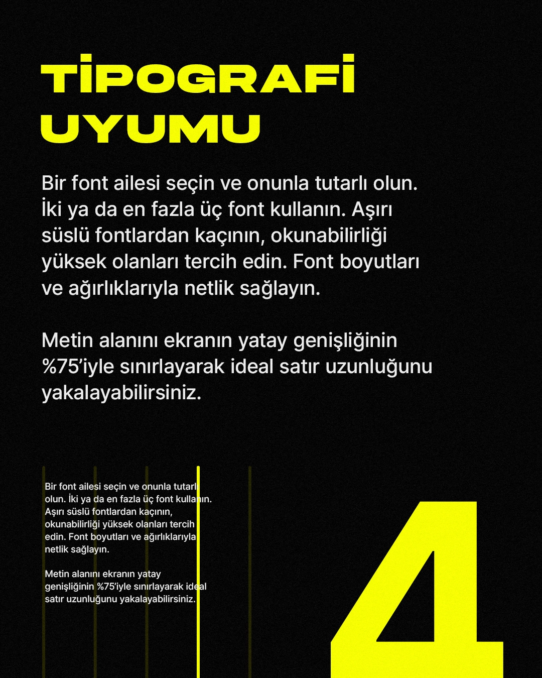 Bu alanda, dijital dünyanın sınırlarını zorlayan özgün işler yer alıyor. Her tasarım, yalnızca görsel bir düzen değil; aynı zamanda bir düşünce yolculuğunun izlerini taşıyor. Renklerin, formların ve boşlukların bilinçli bir tercih olduğu bu çalışmalar; estetikle stratejinin, sezgiyle işlevin kesişiminde ortaya çıkıyor. Görünenden fazlasını arayanlar için hazırlanmış, dijital yüzeyin altına davet eden işler…